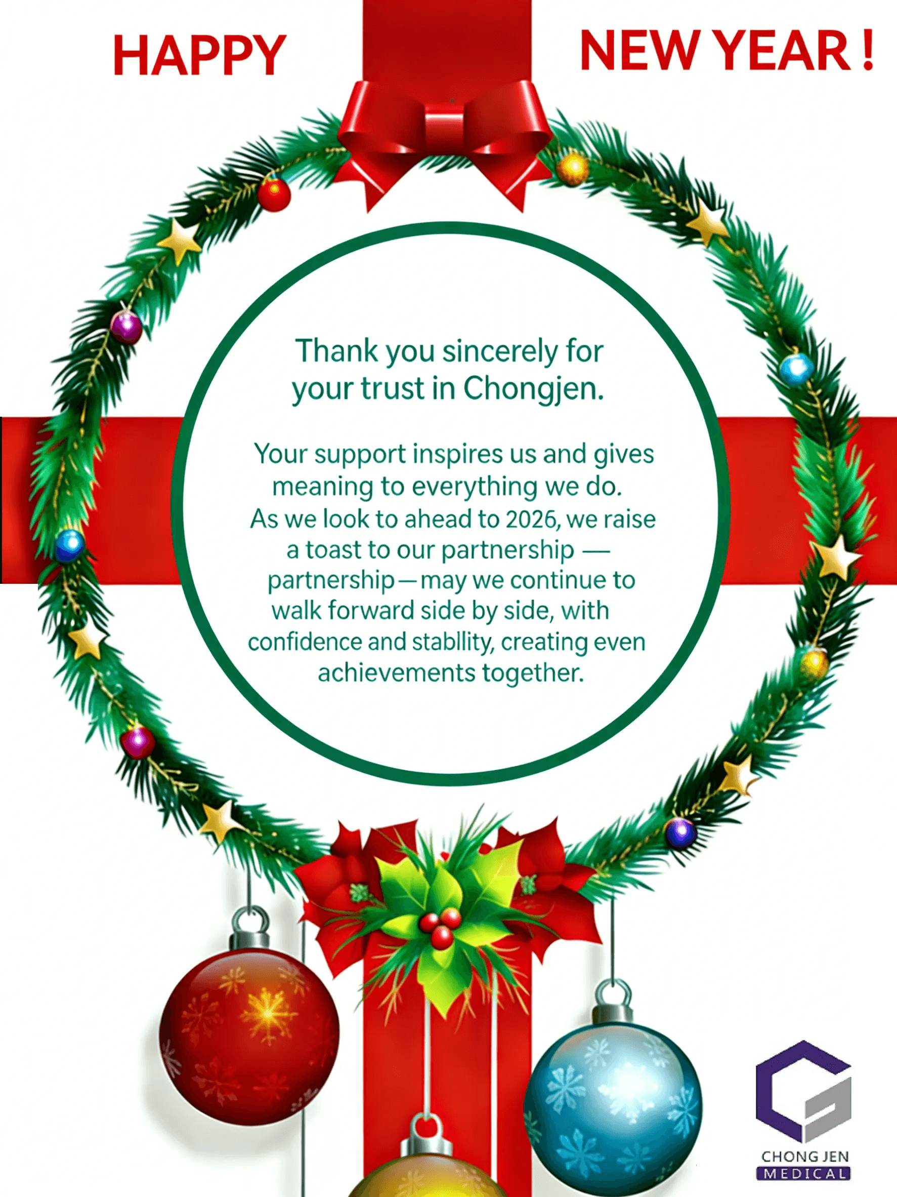 Thank you sincerely for your trust in Chongjen. Your support inspires us and gives meaning to everything we do. As we look ahead to 2026, we raise a toast to our partnership — may we continue to walk forward side by side, with confidence and stability, creating even greater achievements together.